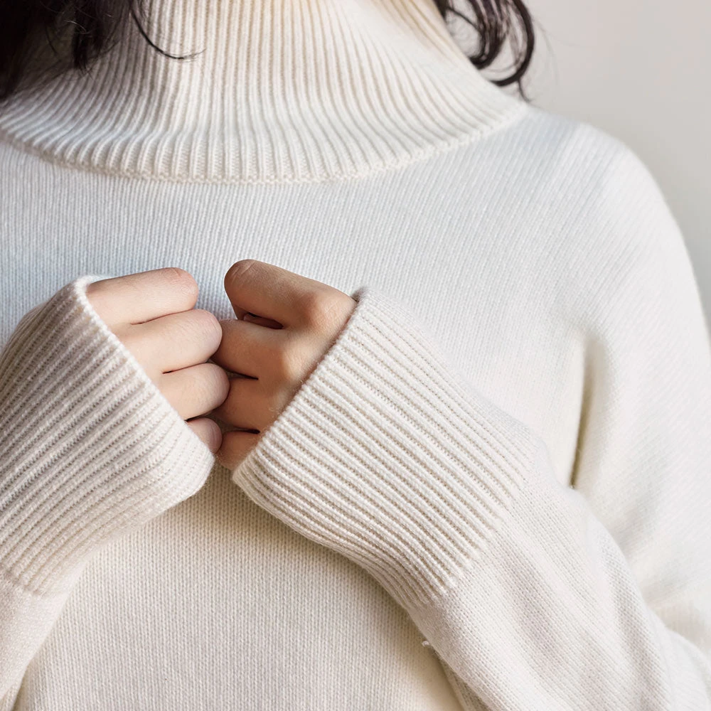 Pull col cheminée en cachemire :