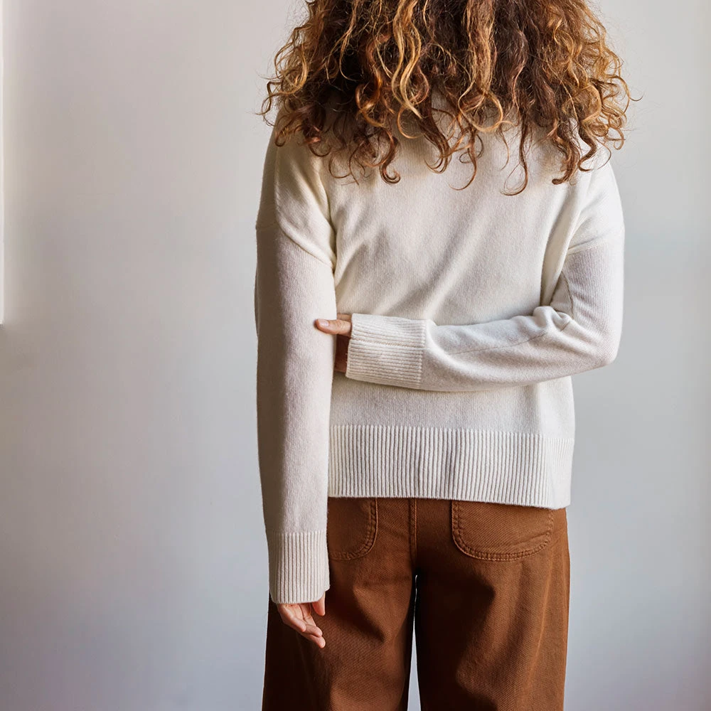 Les cachemires Merci témoignent d’une volonté de revenir à l’essentiel: prendre le temps de trouver la bonne coupe, de choisir un fil de qualité, de penser aux détails qui feront la différence.