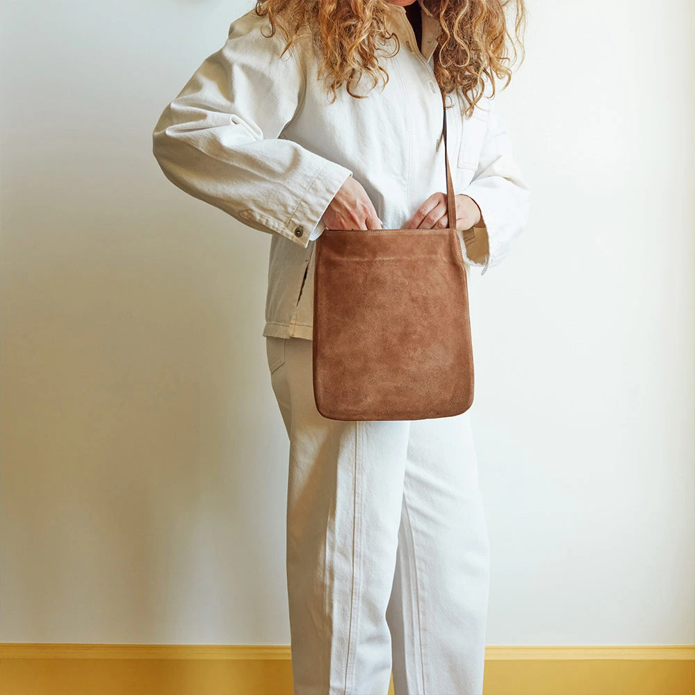 Le sac en daim est né d’une envie de proposer un sac d’une grande simplicité. Au niveau de sa forme, complètement épurée. Aucune métallerie apparente, ni logo. Tout est dans la discrétion, le choix des peausseries sélectionnées, le détail des finitions et le toucher veau velours.